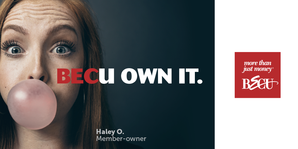 The outcome: Our “BECU You Own It” campaign celebrates individuals who have chosen to bank on each other. This boldness and authenticity has driven BECU’s advertising since we launched the original brand campaign in 2005. Over a decade and nearly a million members later, the brand just keeps getting stronger.