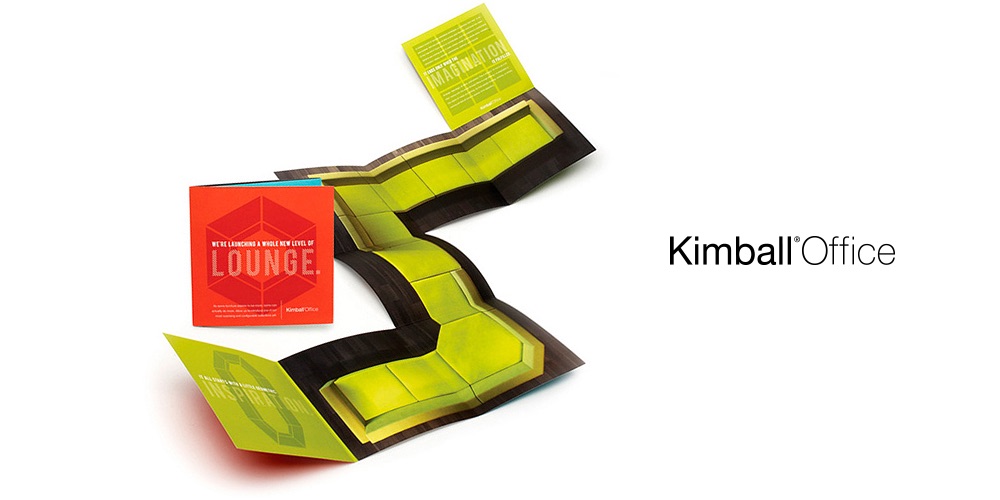 Direct mail piece created for Kimball Office furnishings to showcase the versatility of its Villa Lounge seating.
