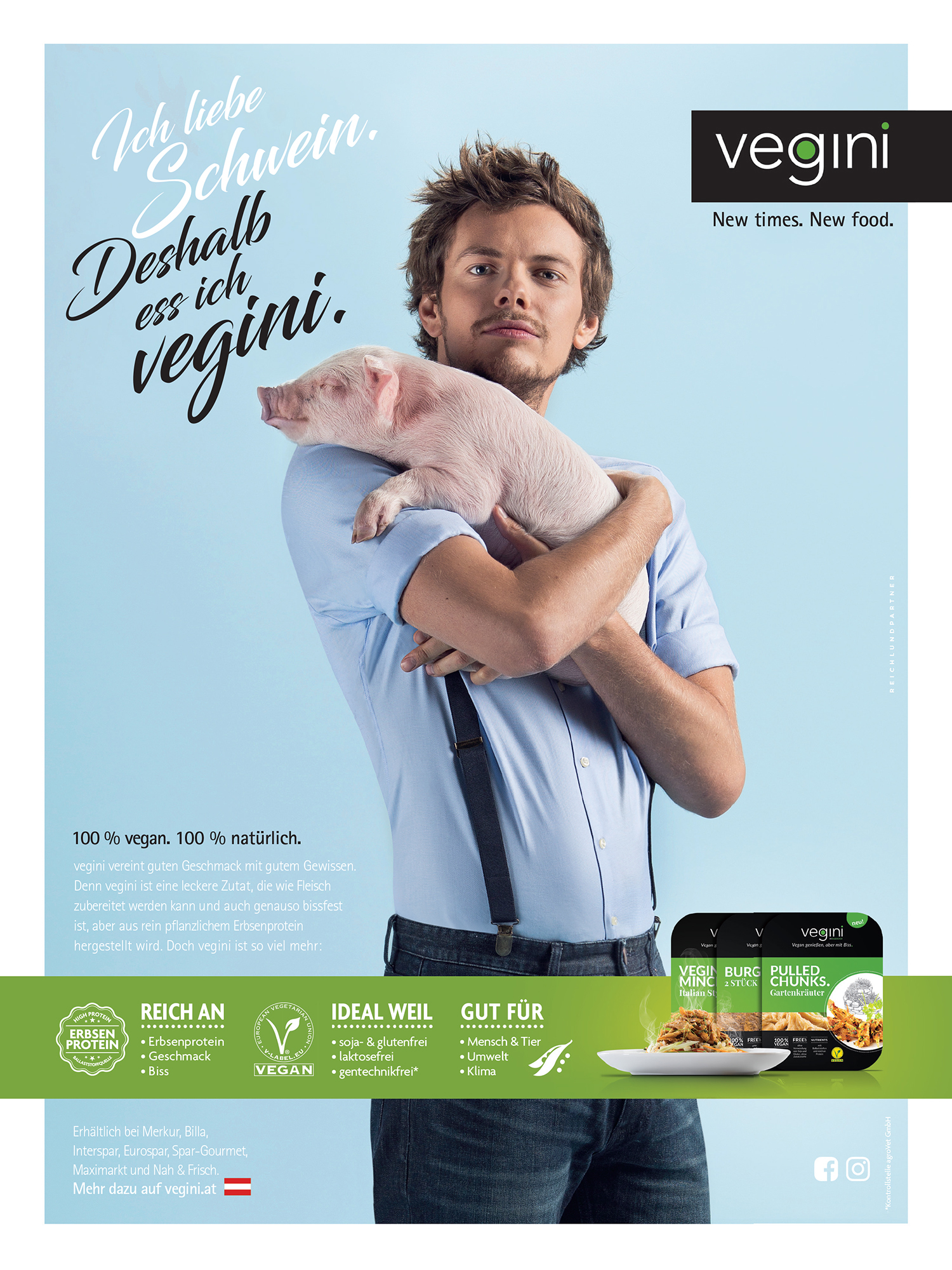 More and more people are changing their eating habits nowadays—they consume less meat and are open to a vegetarian or even vegan way of life, either because of health considerations or to stop animal suffering. Since vegini's food is made with peas (and not soy like most other meat substitutes), it delivers all the advantages of a more health-conscious lifestyle: its products are extremely rich in protein, completely free from genetic engineering or additives, just as firm to the bite as real meat and very eco-friendly in terms of cultivation.