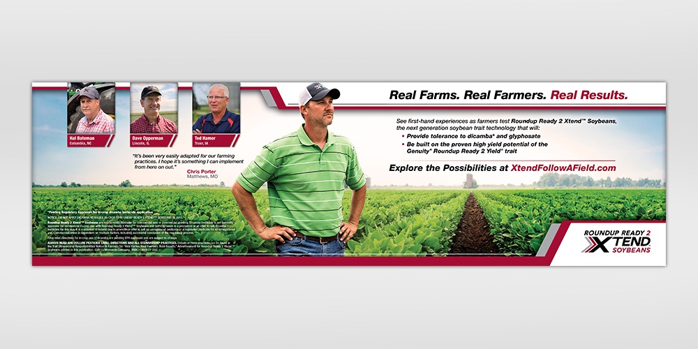 As Monsanto prepares for an anticipated largest soybean launch in its history, the company wanted a way to teach growers about breakthrough technology behind a new type of soybean seed and how to use it on their farms. Beginning in 2013 and continuing through 2016, Brighton followed growers from planting through harvest as they produced Roundup Ready 2 Xtend soybeans under large-scale conditions. Videos highlight the effectiveness and proper use of the technology. The result is a library of more than 40 videos on XtendFollowAField.com. Fifteen-second TV spots, digital and print advertising featuring excerpts from the videos were created to increase traffic to the site. The campaign reached 72 percent of all U.S. soybean growers and increased traffic to the site by 142 percent over the same period the previous year.